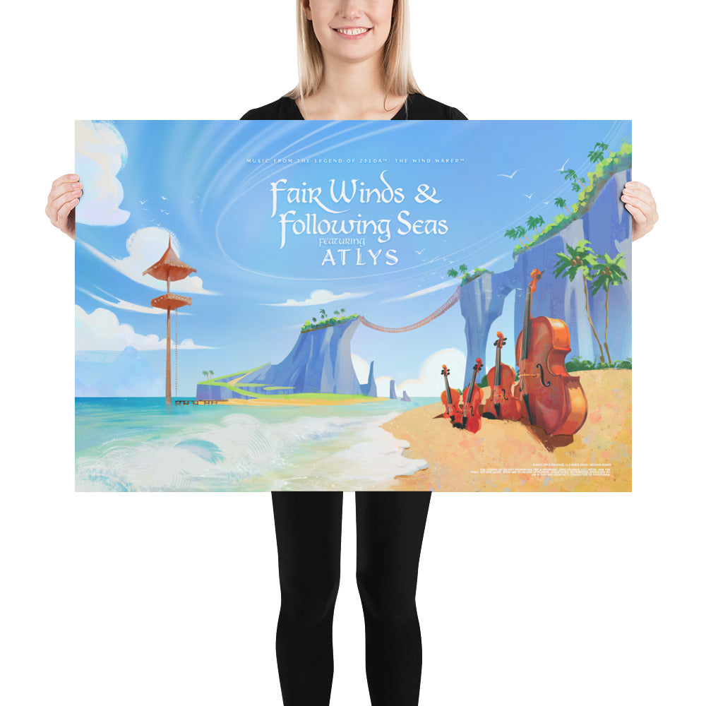 Bring the soothing island vibes of Fair Winds & Following Seas feat. ATLYS into your home or office with our beautiful poster. Featuring a gentle beach scene with rolling waves, high gusts of wind, seagulls, and four instruments of a quartet on the shore, this poster captures the essence of the album's serene and melodic atmosphere. Museum-quality printing on thick matte paper ensures that the poster is durable and long-lasting. It is the perfect addition to any music lover's room or workspace, and is sure to brighten up any environment. Order now to bring a touch of peaceful tranquility into your life.